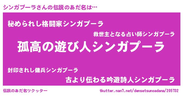 | 胡散臭い通販商品みたいなあだ名 | 『信頼と実績のペンダント…その名も「シンガプーラ」』 |