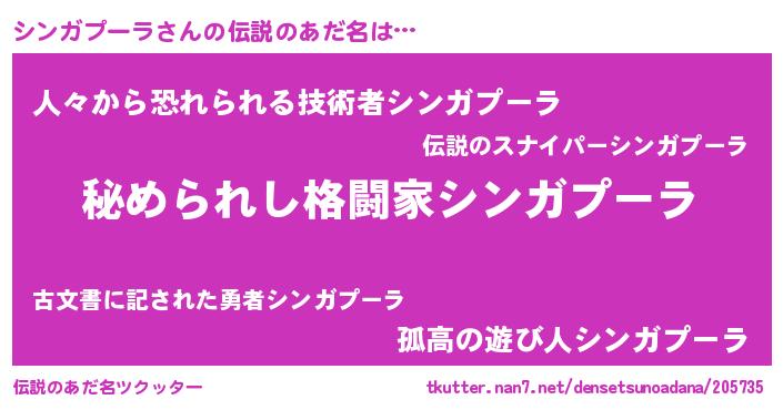 | 欧米人風あだ名 | 『シンガプーラクリステル』 |