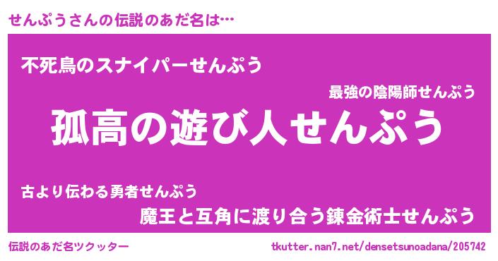 | ヒーロー風カッコイイあだ名 | 『暗黒騎士セン』『スーパーセンプウ』 |
