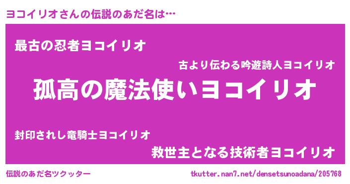 | 胡散臭い通販商品みたいなあだ名 | 『信頼と実績のサプリメント…その名も「ヨコイリオ」』 |