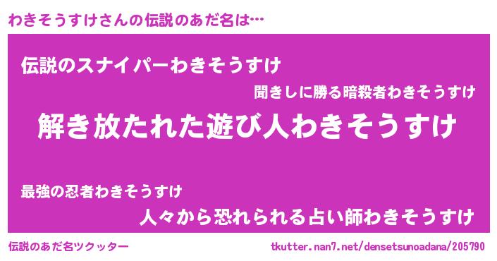 | 意味不明あだ名 | 『自称わきそうすけ』 |