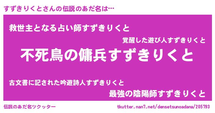 | 恥ずかしいあだ名 | 『プリティーすずきりくと』『すずっちょ』 |