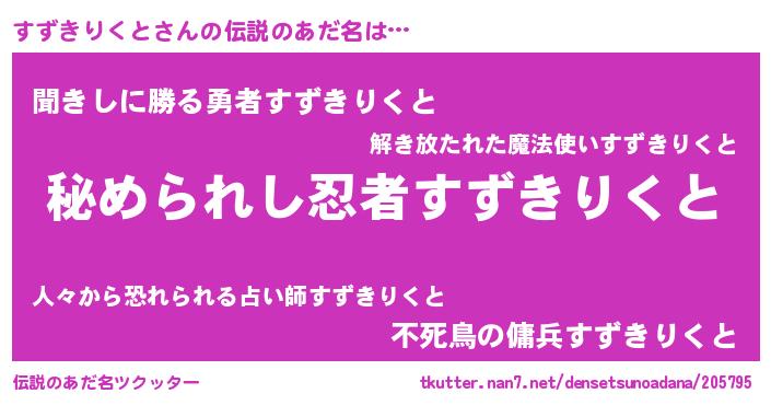 | ファンタジー風あだ名 | 『エターナルスズキリクトー』 |