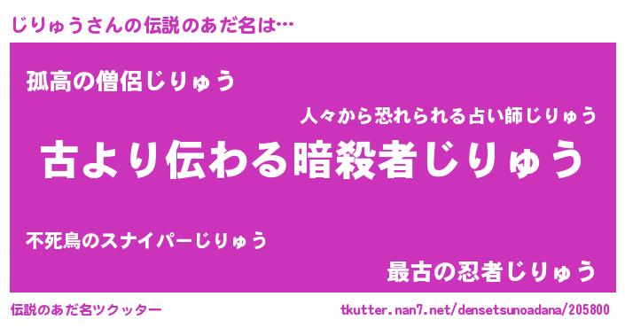 | 意味不明あだ名 | 『永久保存じりゅう』『自称じりゅう』 |
