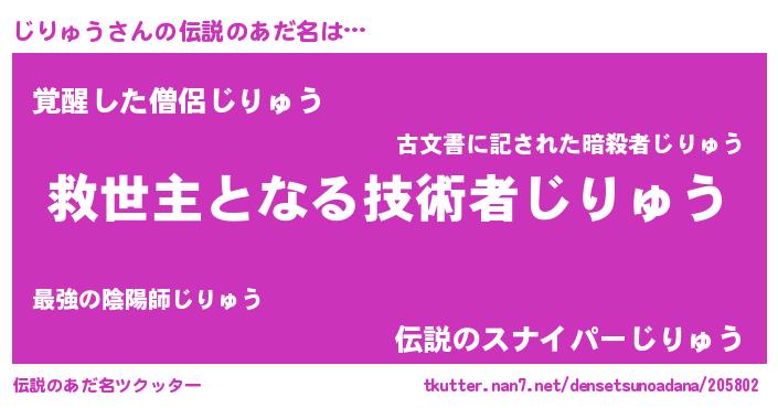 | ヒーロー風カッコイイあだ名 | 『慈愛の使者じりゅう』『魔戒騎士ジリ』 |