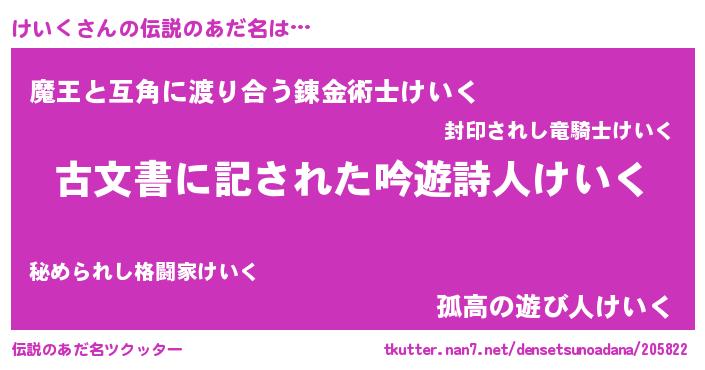 | 意味不明あだ名 | 『永久保存けいく』『しいたけ科けいく属』 |