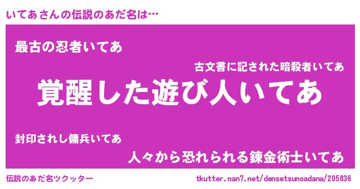 | ヒーロー風カッコイイあだ名 | 『仮面イテダー』『幻影騎士イテ』 |