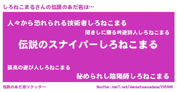 | 男性向けラノベタイトル風あだ名 | 『しろねこまるの憂鬱』 |