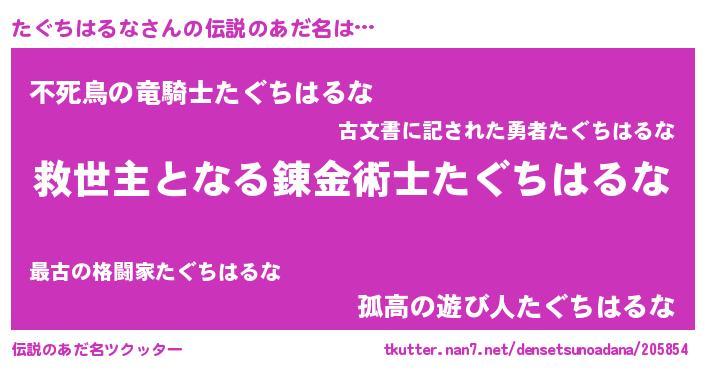 | 女子向けラノベタイトル風あだ名 | 『たぐちはるなストレイドッグス』 |