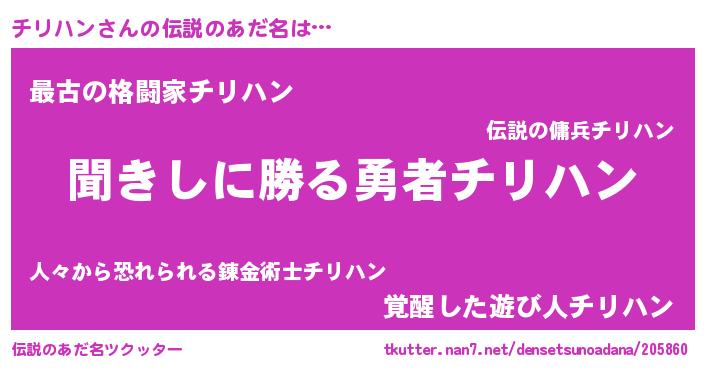 | 意味不明あだ名 | 『永久保存チリハン』『自称チリハン』 |