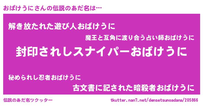 | ヘコむあだ名 | 『おばもー』『おばぷりん』 |