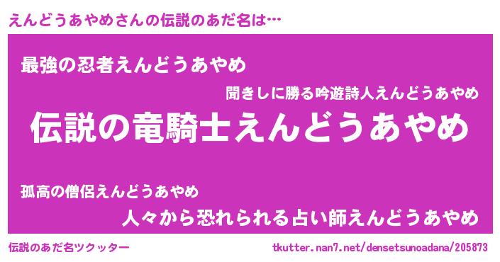 | 胡散臭い通販商品みたいなあだ名 | 『必ず成功するブレスレット…その名も「えんどうあやめ」』 |