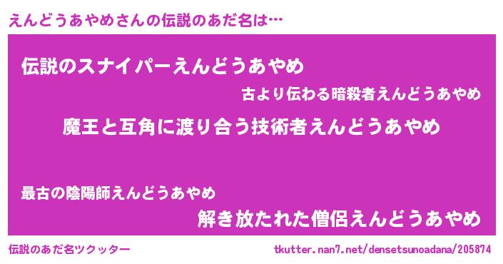 | 欧米人風あだ名 | 『ダニエルえんどうあやめ』 |