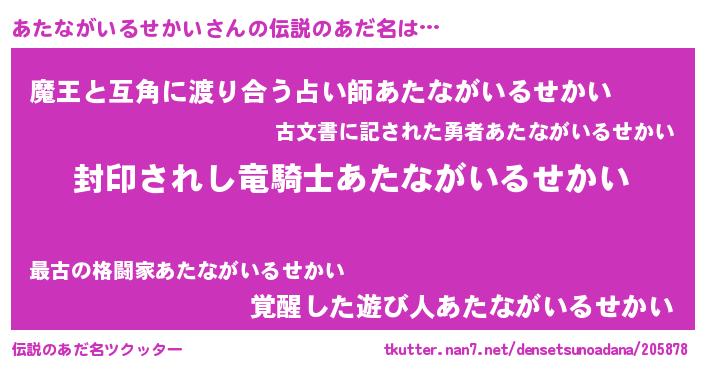 | ヒーロー風カッコイイあだ名 | 『スーパーアタナガイルセカイ』 |