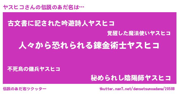 | 意味不明あだ名 | 『めかぶ科ヤスヒコ属』 |