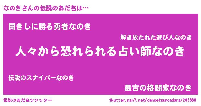 | ヒーロー風カッコイイあだ名 | 『正義の使者なのき』『仮面ナノダー』 |