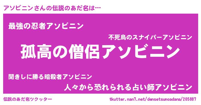 | 意味不明あだ名 | 『とにかく怪しいアソビニン』 |