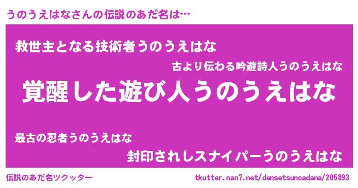 | 肩書あだ名 | 『うのうえはな大将』『うのうえはな団長』 |