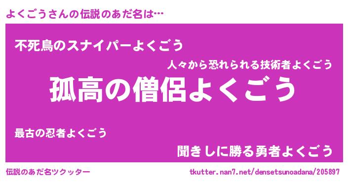 | 意味不明あだ名 | 『とにかく怪しいよくごう』 |