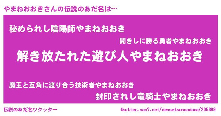 | 意味不明あだ名 | 『とにかく怪しいやまねおおき』 |