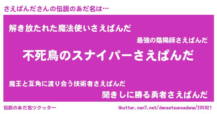 | ヒーロー風カッコイイあだ名 | 『仮面サエダー』『スーパーサエパンダ』 |