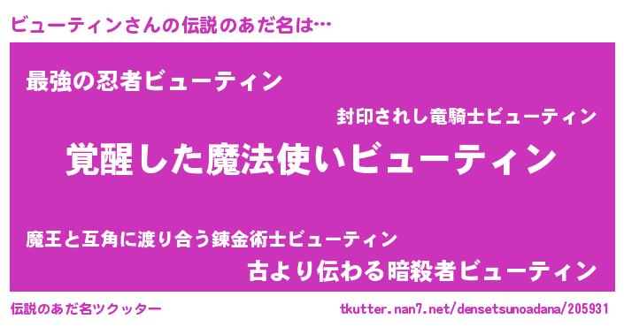| ヒーロー風カッコイイあだ名 | 『究極戦士ビューティン』『仮面ビュダー』 |