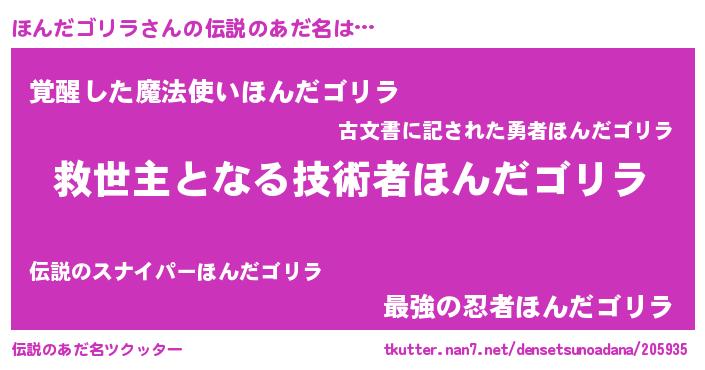 | ヒーロー風カッコイイあだ名 | 『天空の使者ほんだゴリラ』 |