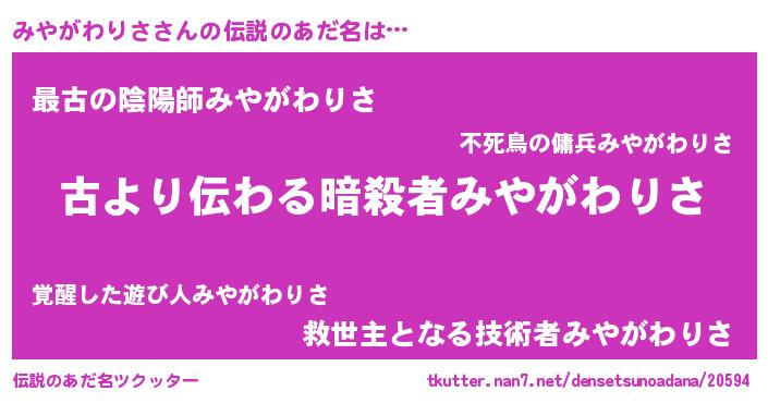 | 胡散臭い通販商品みたいなあだ名 | 『来世でも幸せになれる健康食品…その名も「みやがわりさ」』 |