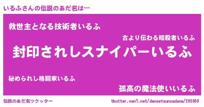 | 意味不明あだ名 | 『住所不定無職いるふ(93歳)』 |