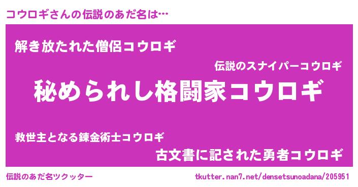 | 女子向けラノベタイトル風あだ名 | 『コウロギなんてお断りですっ。』 |