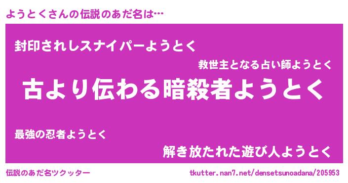 | ヒーロー風カッコイイあだ名 | 『ネオヨウトク』『仮面ヨウダー』 |