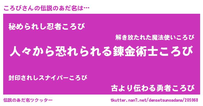 | ヒーロー風カッコイイあだ名 | 『友情の使者ころび』『超時空戦士コロビ』 |