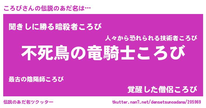 | ヒーロー風カッコイイあだ名 | 『仮面コロダー』『スーパーコロビ』 |