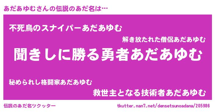 | ヘコむあだ名 | 『あだあゆむ(震え声)』『あだっふぃ~』 |