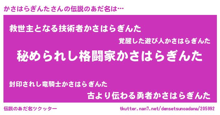 | 男性向けラノベタイトル風あだ名 | 『カサハラギンタスレイヤー』 |