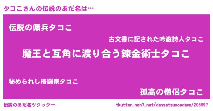 | ヒーロー風カッコイイあだ名 | 『慈愛の使者タコこ』『スーパータココ』 |