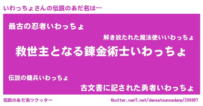 | 意味不明あだ名 | 『住所不定無職いわっちょ(95歳)』 |