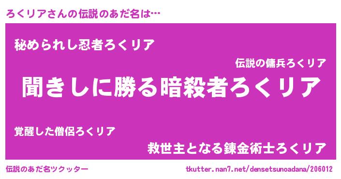 | 意味不明あだ名 | 『永久保存ろくリア』『自称ろくリア』 |