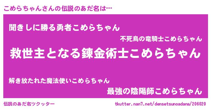 | 女子向けラノベタイトル風あだ名 | 『こめらちゃんストレイドッグス』 |