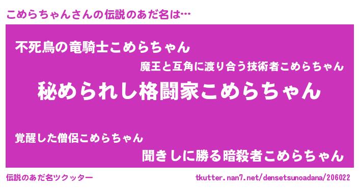 | ヒーロー風カッコイイあだ名 | 『ウルトラこめらちゃんマン』 |