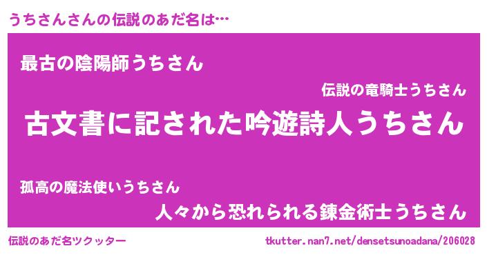 | ヒーロー風カッコイイあだ名 | 『最強戦士ウチサン』『ネオウチサン』 |