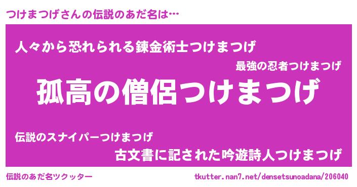 | ヒーロー風カッコイイあだ名 | 『黄金騎士ツケ』『天空の使者つけまつげ』 |