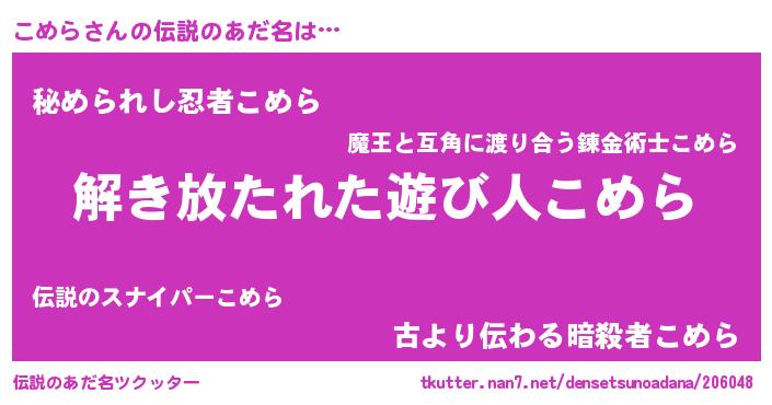 | 意味不明あだ名 | 『とにかく怪しいこめら』『自称こめら』 |