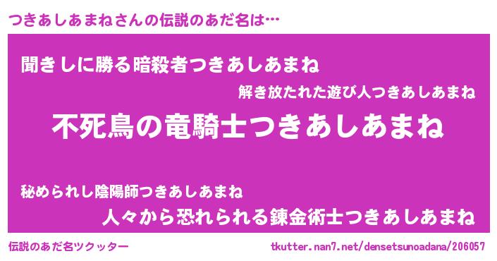 | 欧米人風あだ名 | 『アンジェラ・つきあしあまね』 |
