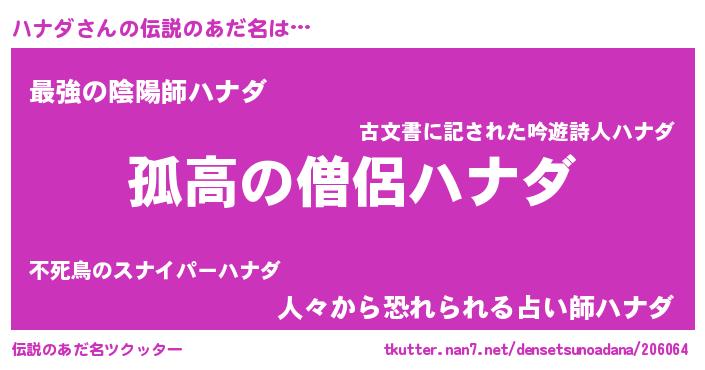 | ポケモン風あだ名 | 『ハナセウス』『ヒハナダ』 |