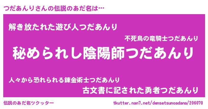 | 意味不明あだ名 | 『つだあんりフォーエバー』 |
