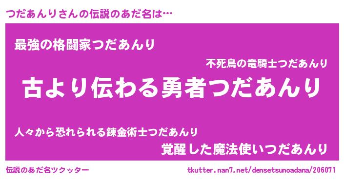 | 意味不明あだ名 | 『永久保存つだあんり』 |