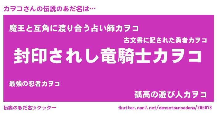 | ヒーロー風カッコイイあだ名 | 『スーパーカヲコ』『サイバー戦士カヲコ』 |