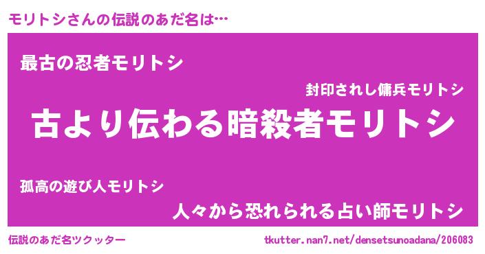 | 胡散臭い通販商品みたいなあだ名 | 『来世でも幸せになれる健康食品…その名も「モリトシ」』 |