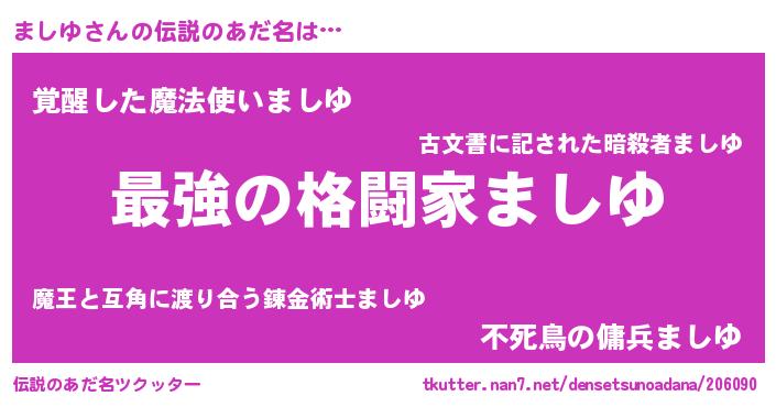 | ヒーロー風カッコイイあだ名 | 『ウルトラましゆマン』『仮面マシダー』 |